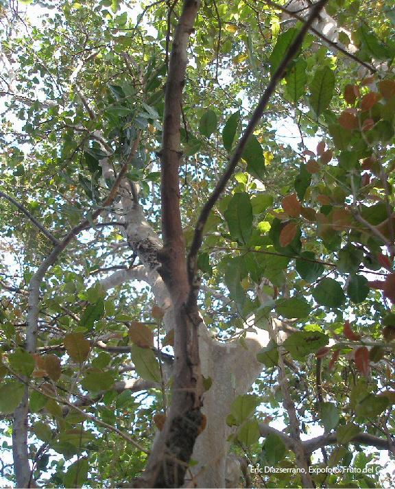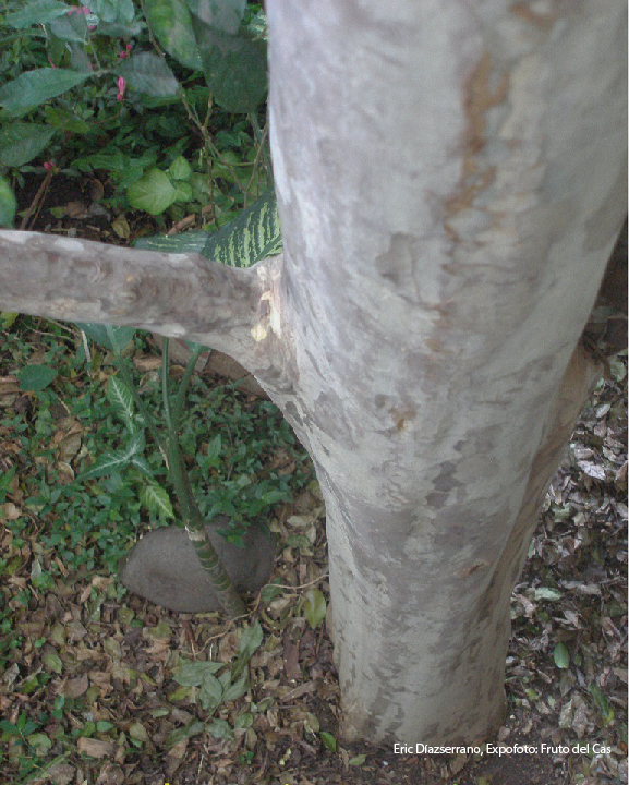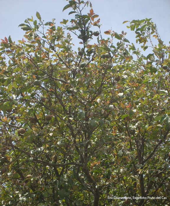 Dos veces al año, en marzo y setiembre, el árbol bota sus hojas mientras nacen los nuevos retoños junto con sus frutos, con la particularidad de que el fruto del cas, los cases, no se toman directamente del árbol, se juntan de la hojarasca pues caen al momento justo de su optimidad para ser utilizado. Es un producto perecedero al punto que, si no se le recoje diariamente es manjar de mosquitos. "Un ácido que incita a ser libado, cuando uno le da la segunda mordidita" refiere la litertura junto con los muchos seres que le habitan; aquí un detalle de El Pintorcito: "¡ Ven ! Los yigüirros están cantando y quiero mostrarte nuestra casa. Este firme árbol de cas ha sido nuestro hogar durante muchas generaciones. Observa cómo la araña aseguró su tela colgándola de un trozo de rama. Aprovecha todos los recursos. Y si el viento o la lluvia destruyeran -cosa difícil- esta tela de araña, ella construiría otra. Ven: entra en mi mundo, observa nuestros nidos. Este es nuestro hogar. (Arbol de sueños, poesía de Hannia Hoffmann; de su libro Juegocanto). |