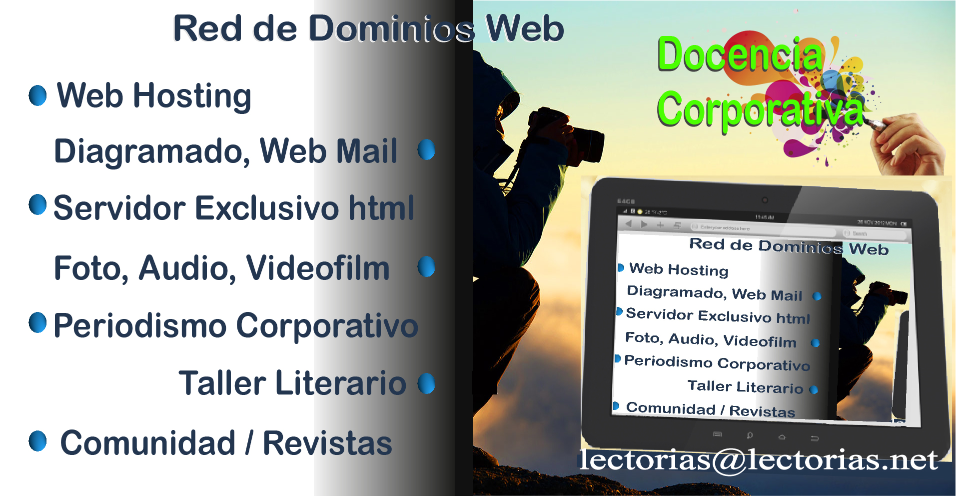 Alojamiento e Inscripción de Dominios Web, que incluye cuentas de correos, diseño, diagramado y otros muchos valores agregados, entre ellos, ©bibliotecas propias especializadas en materias de Producción de Comunicación, Periodismo Corporativo,